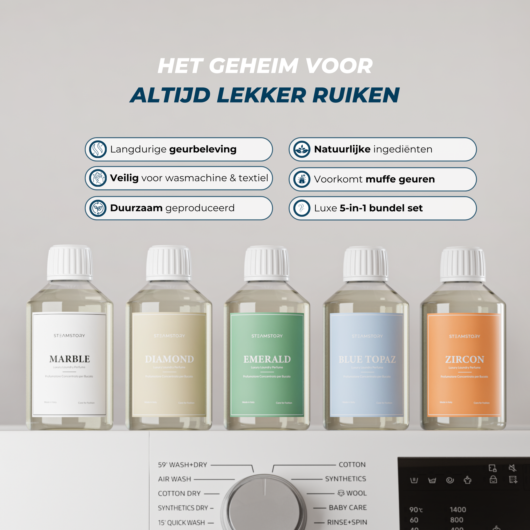 Transform your laundry experience with our luxury bundle laundry perfume, a refined addition to your washing routine that elevates your clothes to an oasis of freshness and elegance. Every drop of our exclusive formula is infused with carefully selected scent notes, inspired by the natural beauty of flowers, fruits, and herbs.