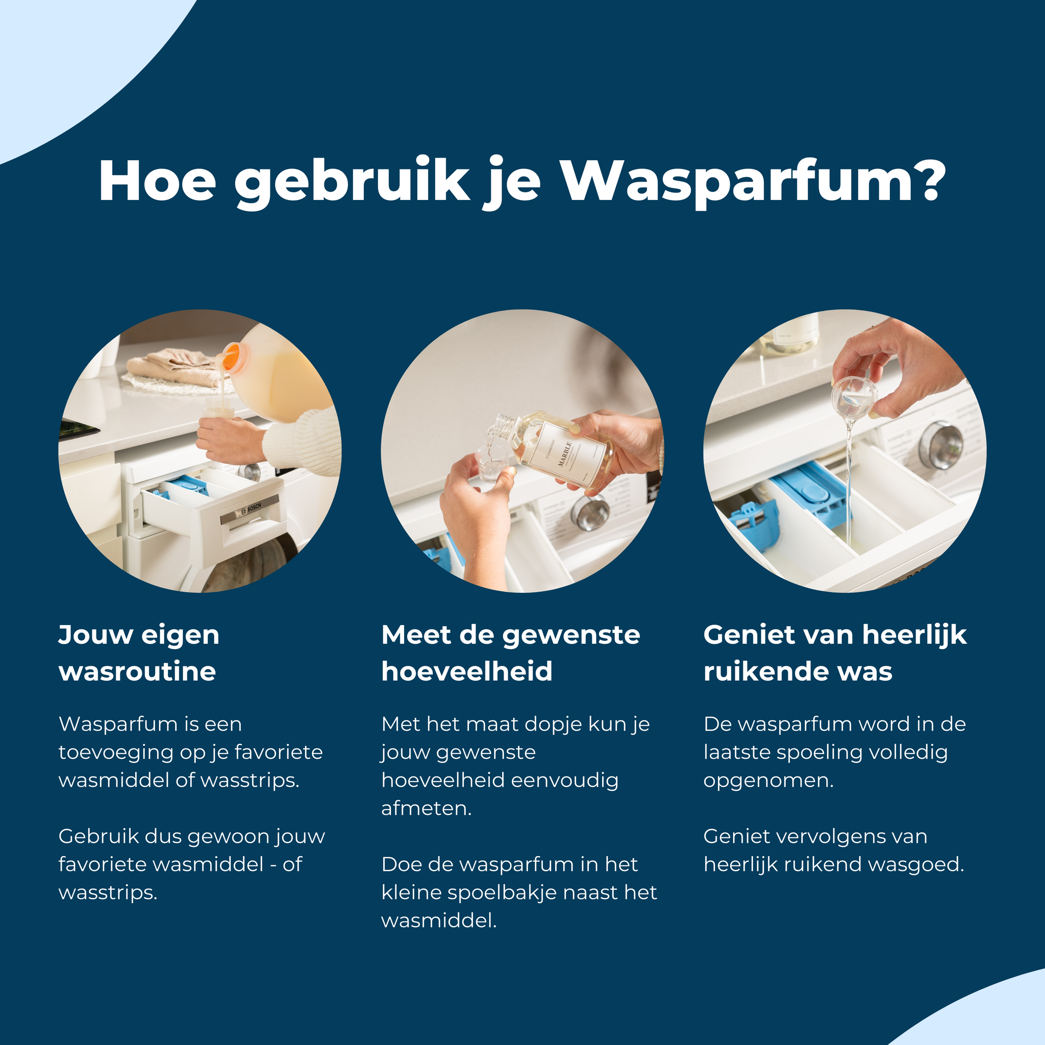 When washing with Laundry Perfume, you can set the washing machine to temperatures up to 95 degrees Celsius. However, our advice is to wash at a maximum of 60 degrees Celsius. This temperature is ideal for harnessing the cleaning power of both your regular detergent and the Laundry Perfume, while also being energy-efficient and gentle on your garments.